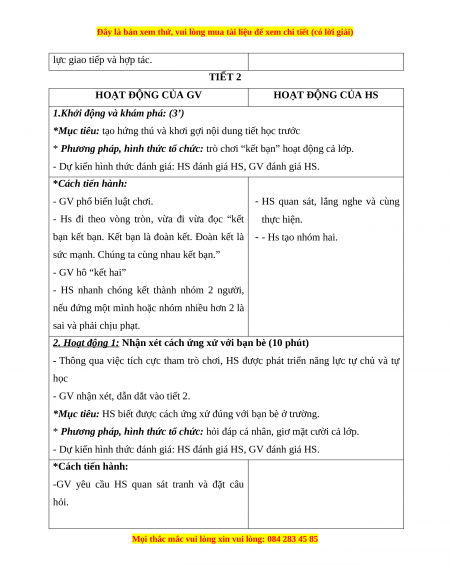 - MT3: Kính trọng thầy cô và bạn bè trong trường. 2. Phẩm chất: