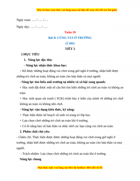Bài 8: CÙNG VUI Ở TRƯỜNG (2 tiết) TIẾT 2 I.MỤC TIÊU