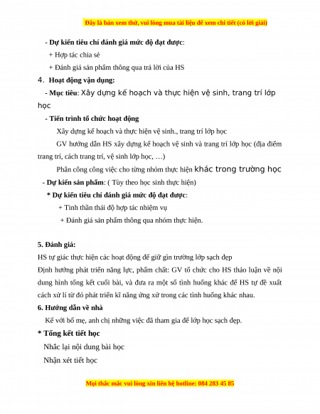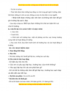 - Mục tiêu: Có ý thức giữ gìn vệ sinh trường lớp và nhắc nhở các