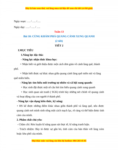 Bài 10: CÙNG KHÁM PHÁ QUANG CẢNH XUNG QUANH (2 tiết) TIẾT 2 I.MỤC TIÊU