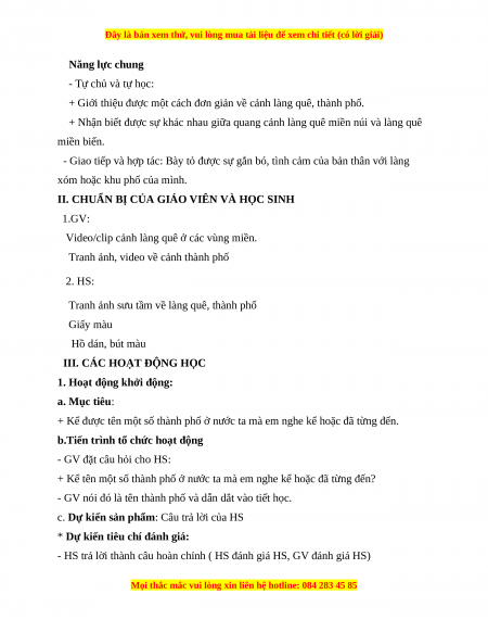 + Nhận biết và giới thiệu được một cách đơn giản về cảnh làng quê, thành phố.