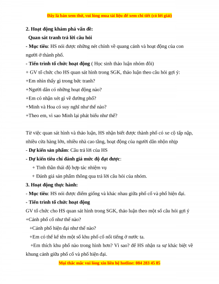 - Mục tiêu: HS nói được điểm giống và khác nhau giữa phố cổ và phố hiện đại.