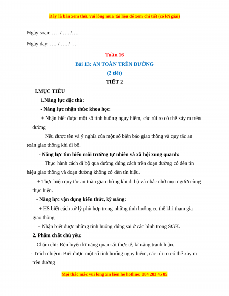 Bài 13: AN TOÀN TRÊN ĐƯỜNG (2 tiết) TIẾT 2 I.MỤC TIÊU