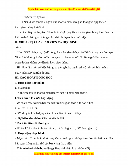 - Mục tiêu: Thực hiện được quy tắc an toàn giao thông theo đèn tín hiệu và biển