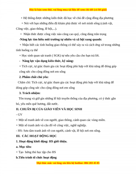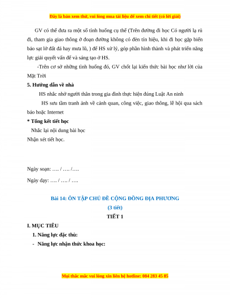 Bài 14: ÔN TẬP CHỦ ĐỀ CỘNG ĐỒNG ĐỊA PHƯƠNG (3 tiết) TIẾT 1 I. MỤC TIÊU