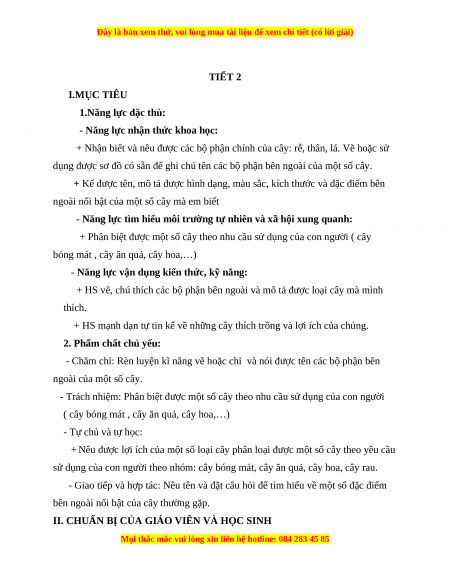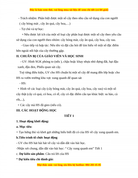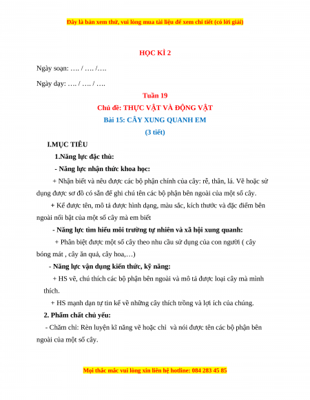 Bài 15: CÂY XUNG QUANH EM (3 tiết) I.MỤC TIÊU