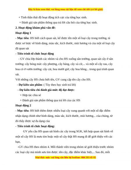 - Mục tiêu: HS biết thêm được nhiều loại cây xung quanh với một số đặc điểm