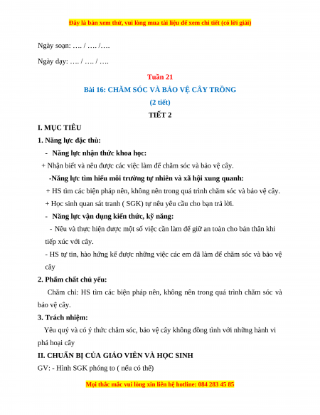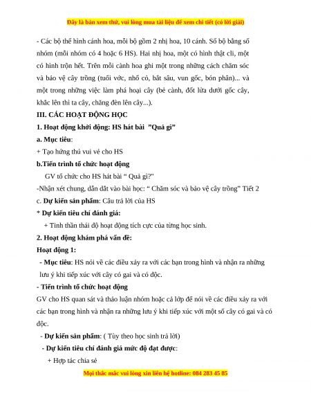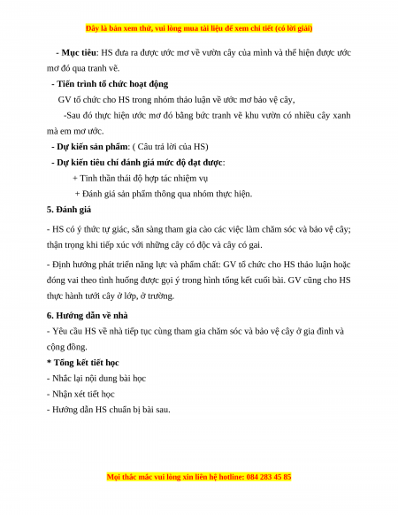 - HS có ý thức tự giác, sẵn sàng tham gia cào các việc làm chăm sóc và bảo vệ cây;
