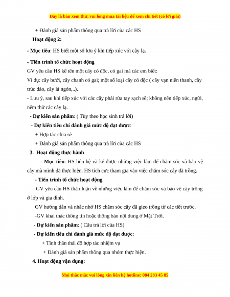 - Nêu và thực hiện được một số việc cần làm để giữ an toàn cho bản thân khi tiếp xúc với cây.
