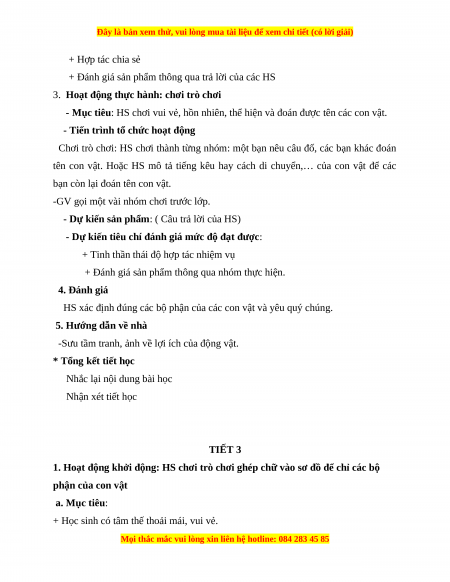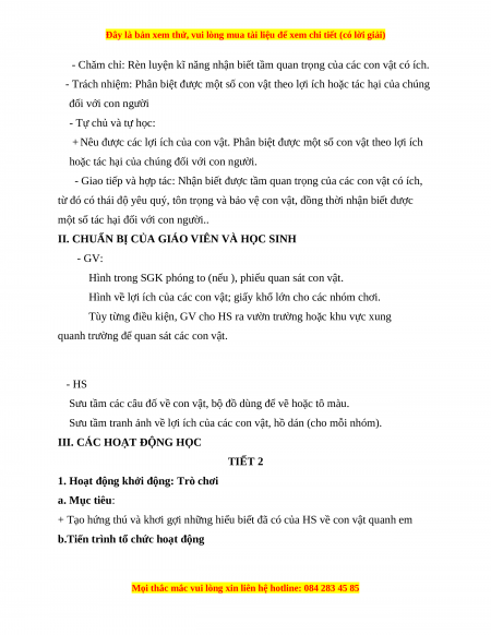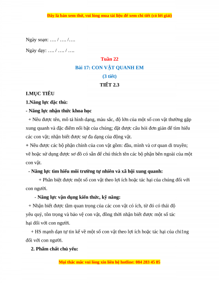 Bài 17: CON VẬT QUANH EM (3 tiết) TIẾT 2.3 I.MỤC TIÊU