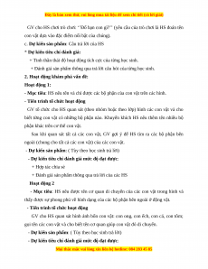 - Dự kiến sản phẩm: ( Tùy theo học sinh trả lời)