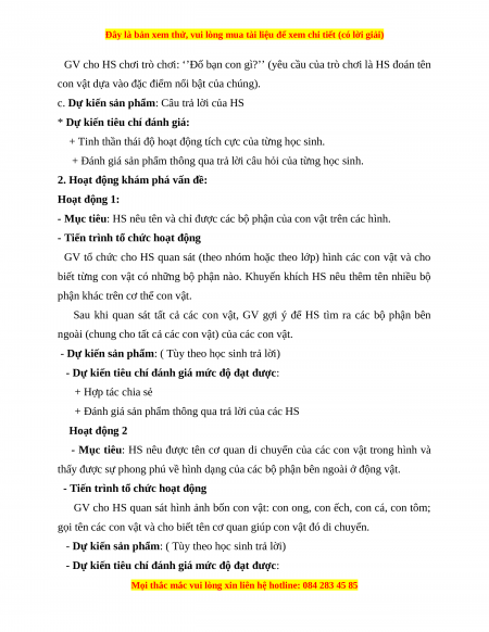 + Nêu được các bộ phận chính của con vật gồm: đầu, mình và cơ quan di truyền;