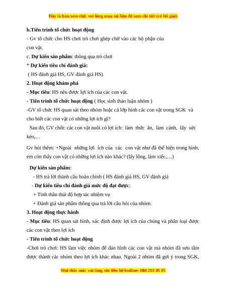 - Giao tiếp và hợp tác: Nhận biết được tầm quan trọng của các con vật có ích,