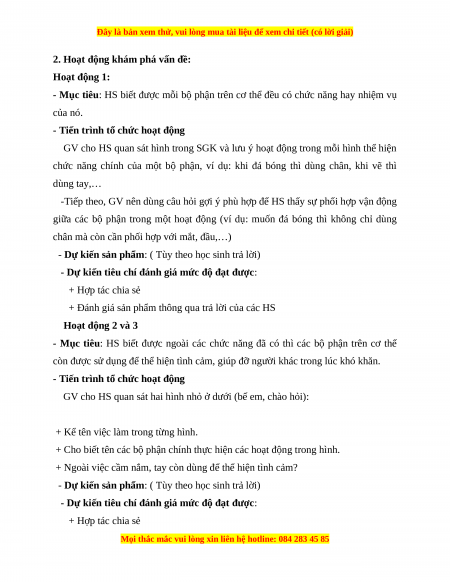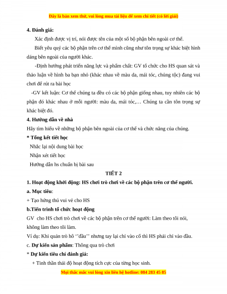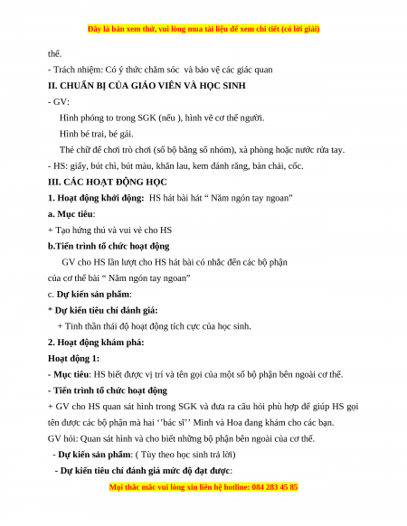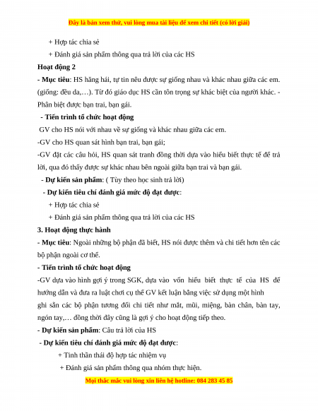 + Xác định được tên, hoạt động các bộ phận bên ngoài của cơ thể; phân biệt được con trai và con gái.