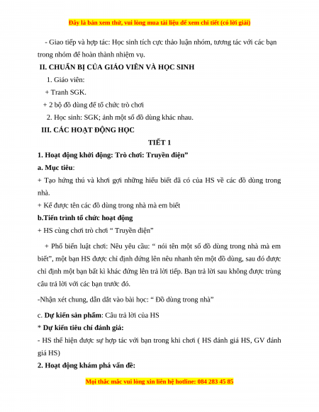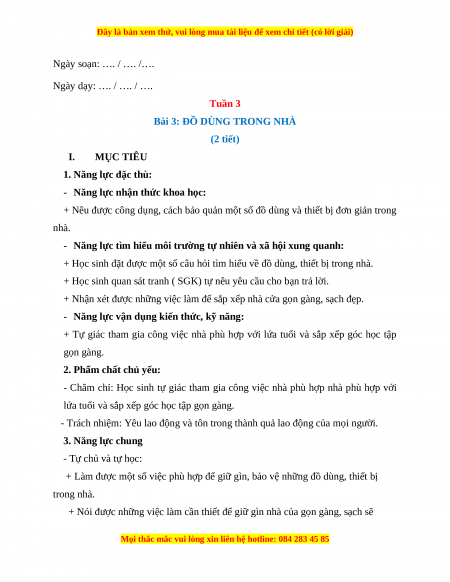Bài 3: ĐỒ DÙNG TRONG NHÀ (2 tiết) I. MỤC TIÊU