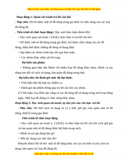 - Mục tiêu: HS kể được một số đồ dùng trong gia đình và chức năng của các loại đồ dùng đó.