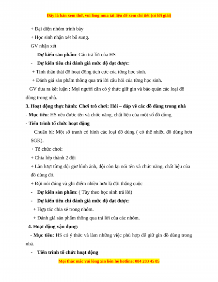 + Nêu được công dụng, cách bảo quản một số đồ dùng và thiết bị đơn giản trong nhà.