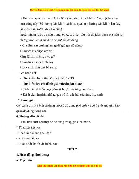 + Nêu được công dụng, cách bảo quản một số đồ dùng và thiết bị đơn giản trong