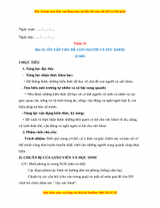 Bài 25: ÔN TẬP CHỦ ĐỀ CON NGƯỜI VÀ SỨC KHỎE