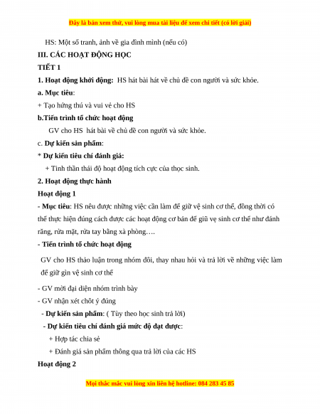 III. CÁC HOẠT ĐỘNG HỌC TIẾT 1
