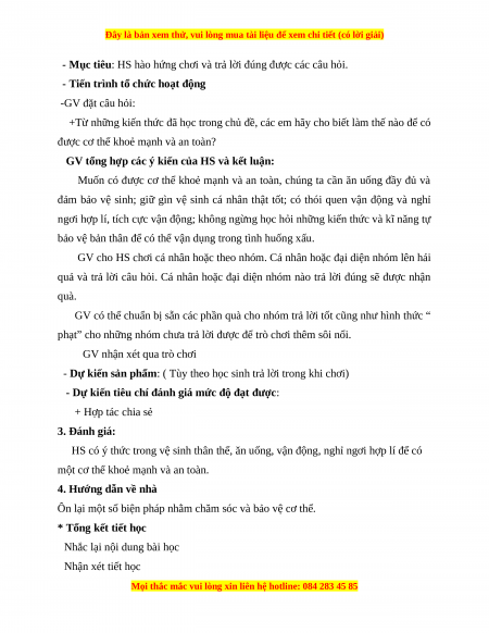 Trách nhiệm: Biết quý trọng cơ thể, có ý thức tự giác chăm sóc và bảo vệ cơ