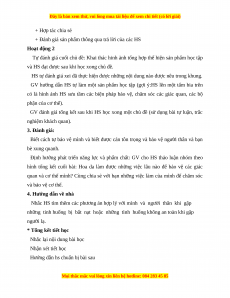ngón tay, hay clip hướng dẫn trẻ cách tự bảo vệ minh, phòng tránh xâm hại tình dục,... - GV chốt, chuyển ý