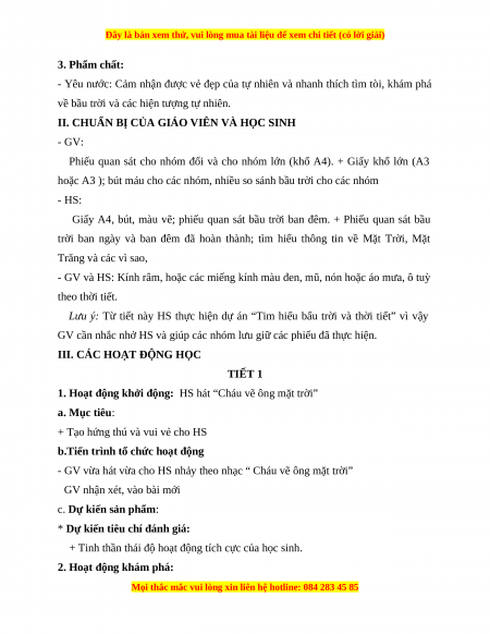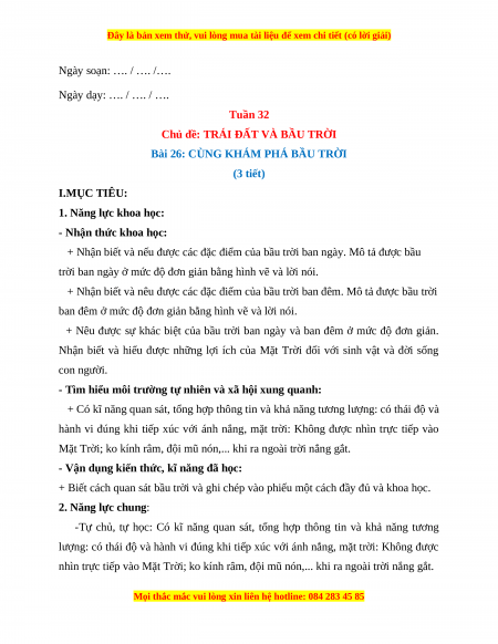 Bài 26: CÙNG KHÁM PHÁ BẦU TRỜI (3 tiết) I.MỤC TIÊU: