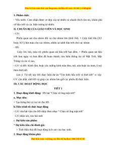 III. CÁC HOẠT ĐỘNG HỌC TIẾT 1