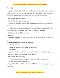 - HS biết quan sát và mô tả bắt trời ở mức độ đơn giản: yêu thích khám phá bầu trời.