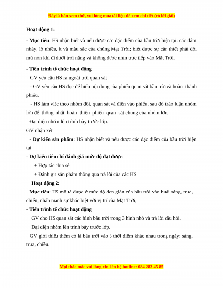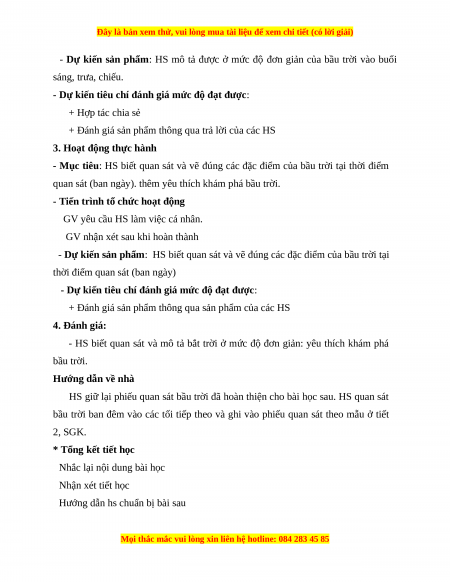 - Mục tiêu: HS mô tả được ở mức độ đơn giản của bầu trời vào buổi sáng, trưa,