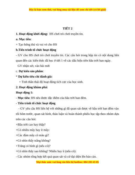 quan đến các kiến thức đã học ở tiết 1 về các dấu hiệu trên bầu trời ban ngày.