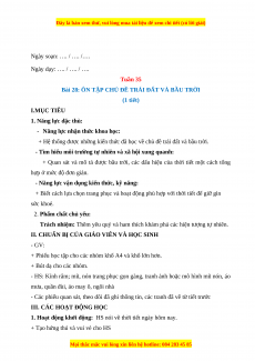 Bài 28: ÔN TẬP CHỦ ĐỀ TRÁI ĐẤT VÀ BẦU TRỜI (1 tiết) I.MỤC TIÊU