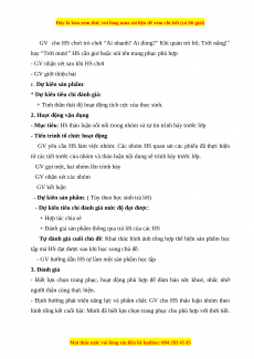 - Dự kiến sản phẩm: ( Tùy theo học sinh trả lời)
