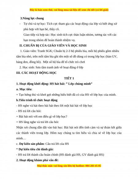 III. CÁC HOẠT ĐỘNG HỌC TIẾT 1