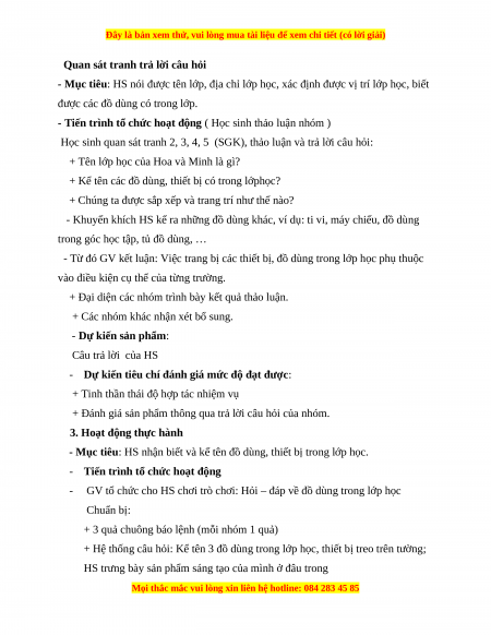 - Mục tiêu: HS nhận biết và kể tên đồ dùng, thiết bị trong lớp học.