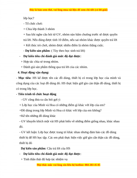 + Nêu được tên một số đồ dùng, thiết bị có trong lớp học và công dụng của các loại đồ dùng đó.