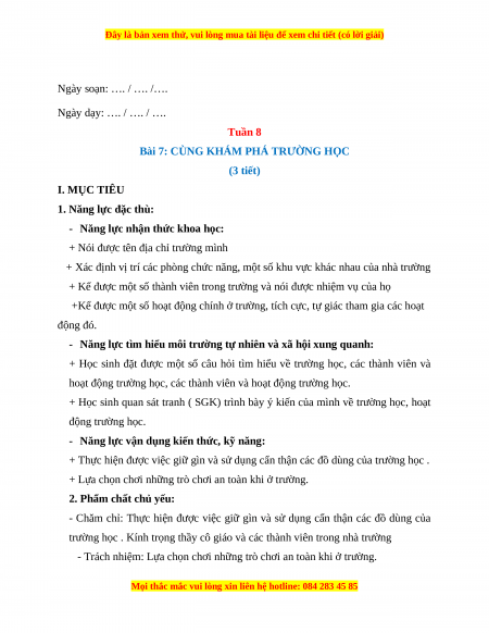 Bài 7: CÙNG KHÁM PHÁ TRƯỜNG HỌC (3 tiết) I. MỤC TIÊU