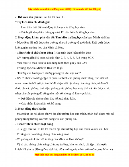 2. Hoạt động khám phá vấn đề: Tìm hiểu trường học của bạn Minh và Hoa.