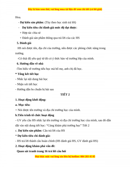 - Mục tiêu: Hs nói được tên và địa chỉ trường học của mình, nhận biết được một số