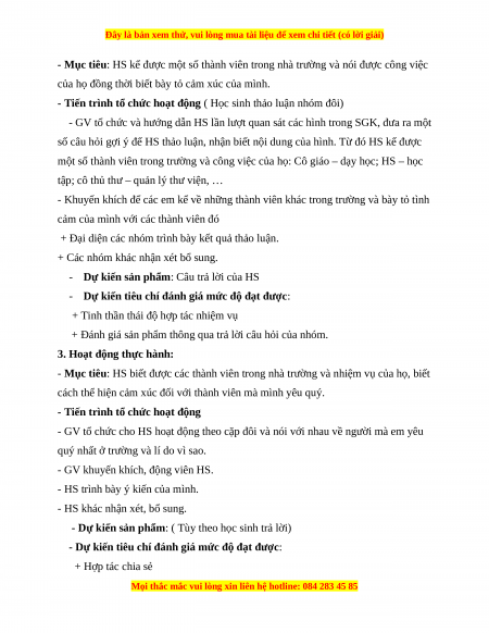 - Mục tiêu: HS nói được tên trường, địa chỉ trường và giới thiệu khái quát được