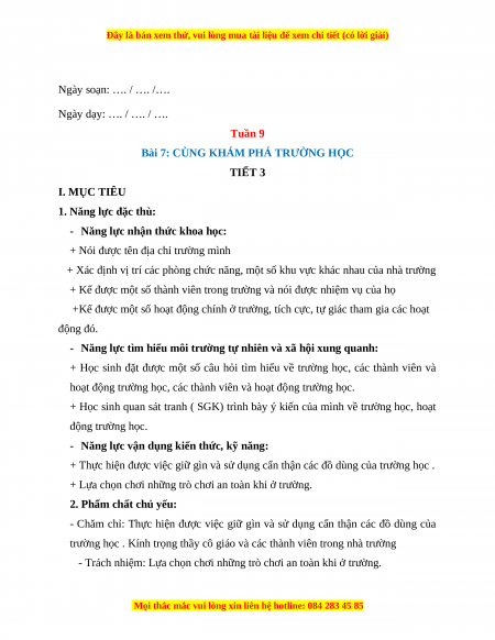 Bài 7: CÙNG KHÁM PHÁ TRƯỜNG HỌC TIẾT 3 I. MỤC TIÊU