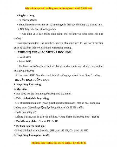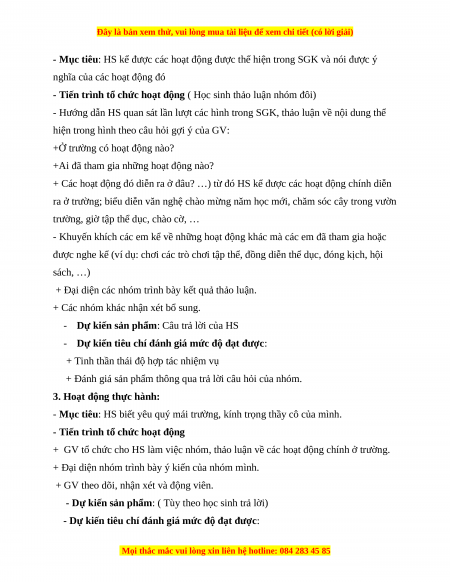2. Học sinh: SGK; Sưu tầm tranh ảnh về trường học và các hoạt động ở trường