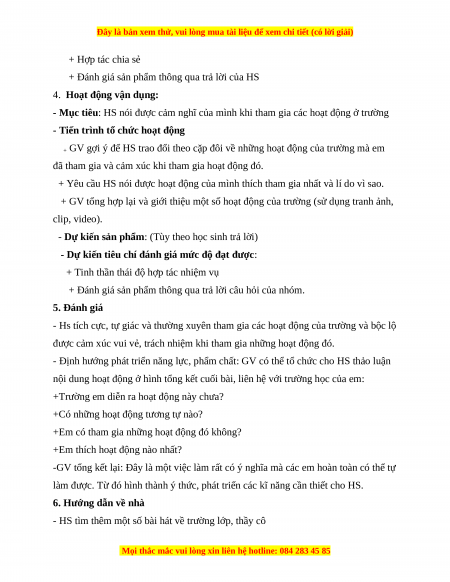 +Kể được một số hoạt động chính ở trường, tích cực, tự giác tham gia các hoạt động đó.