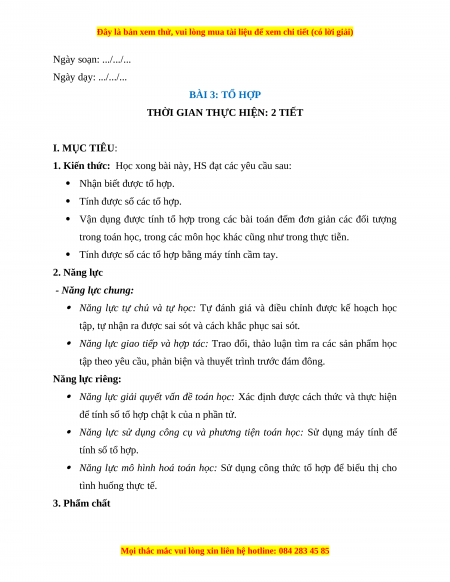 Ngày soạn: .../.../... Ngày dạy: .../.../... BÀI 3: TỔ HỢP