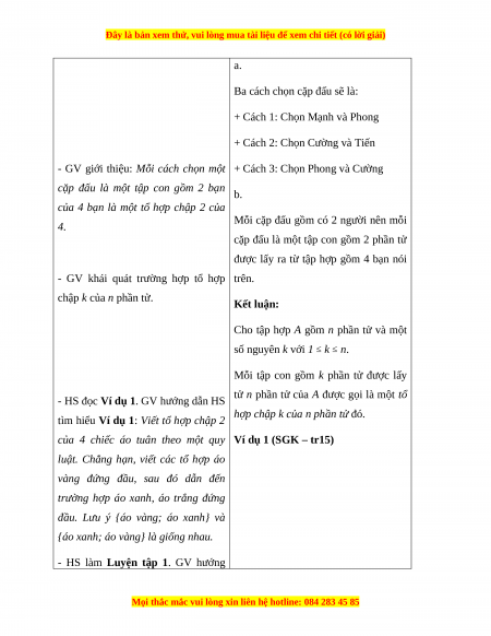 Giáo án Tổ Hợp Toán 10 Cánh diều