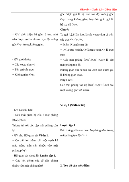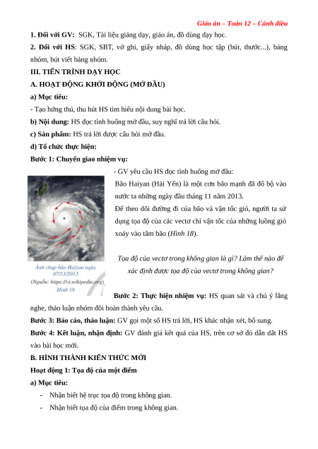 Giáo án – Toán 12 – Cánh diều b) Nội dung: