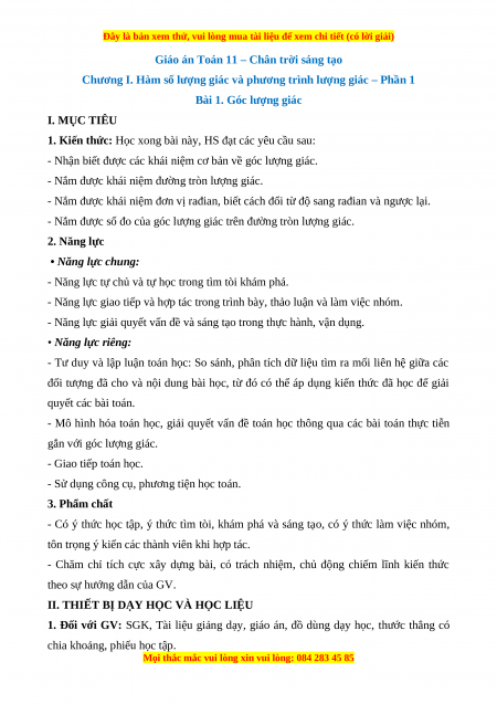 Bài 1. Góc lượng giác I. MỤC TIÊU