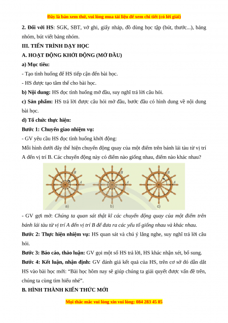 A. HOẠT ĐỘNG KHỞI ĐỘNG (MỞ ĐẦU) a) Mục tiêu: