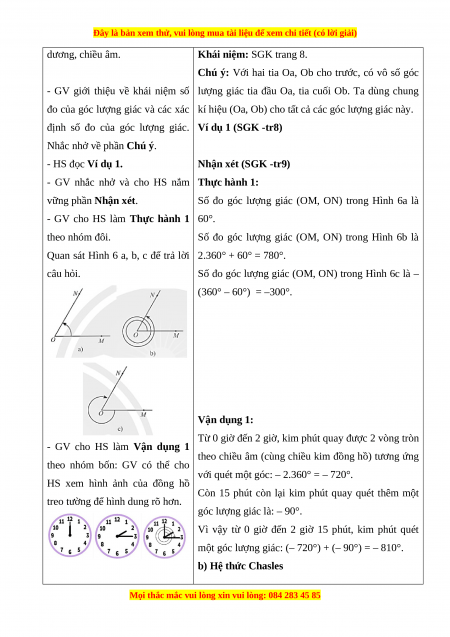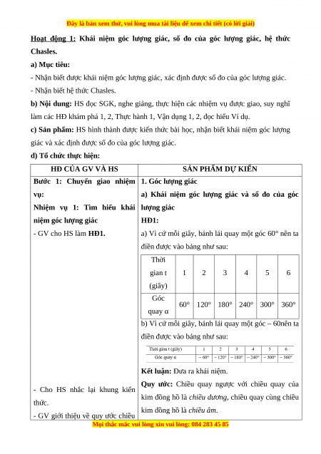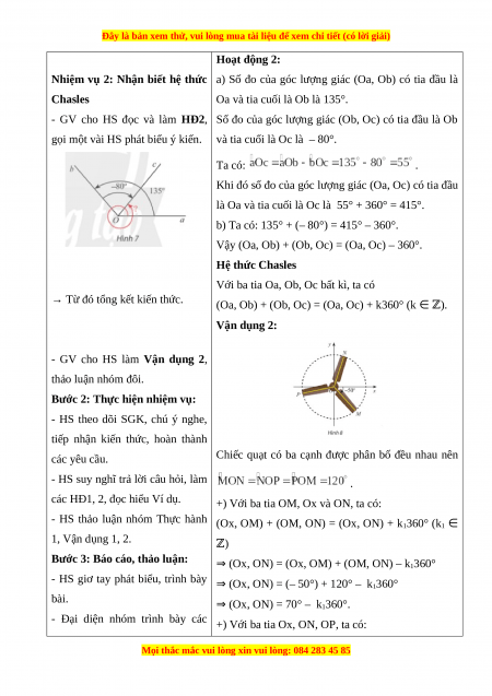 Bước 1: Chuyển giao nhiệm 1. Góc lượng giác vụ:
