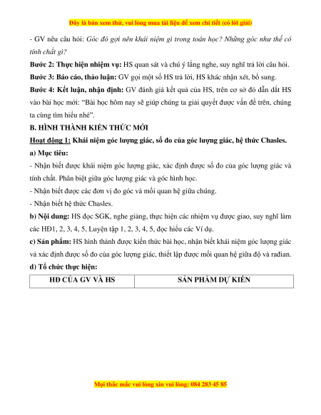 c) Sản phẩm: HS hình thành được kiến thức bài học, nhận biết khái niệm góc lượng giác